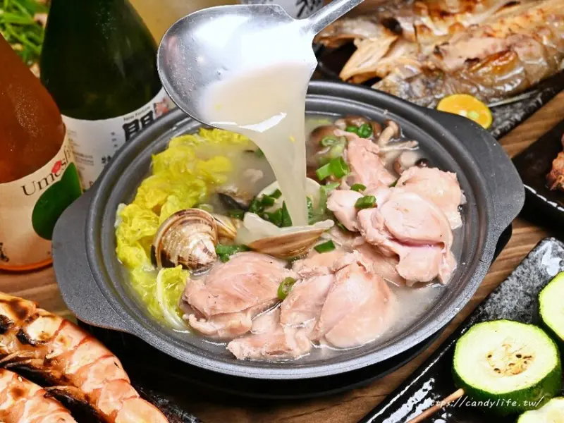 冷冷的天氣想要來碗熱呼呼的暖湯,糖糖超推魚小二串燒酒場這道日式水炊雞湯鍋,湯底採用了雞骨下去熬煮乳白色澤,富有滿滿膠質