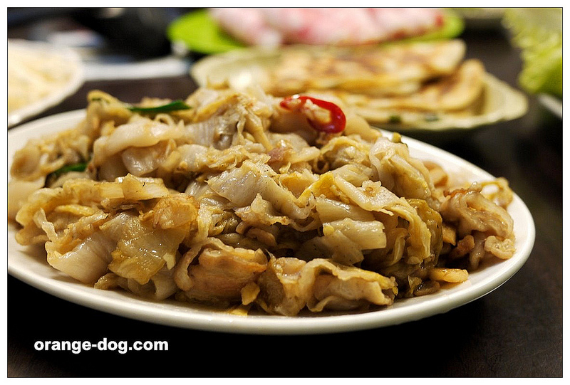 嚼勁跟麵皮焦香都很夠..而通常都是和炒豬肉一起吃的..