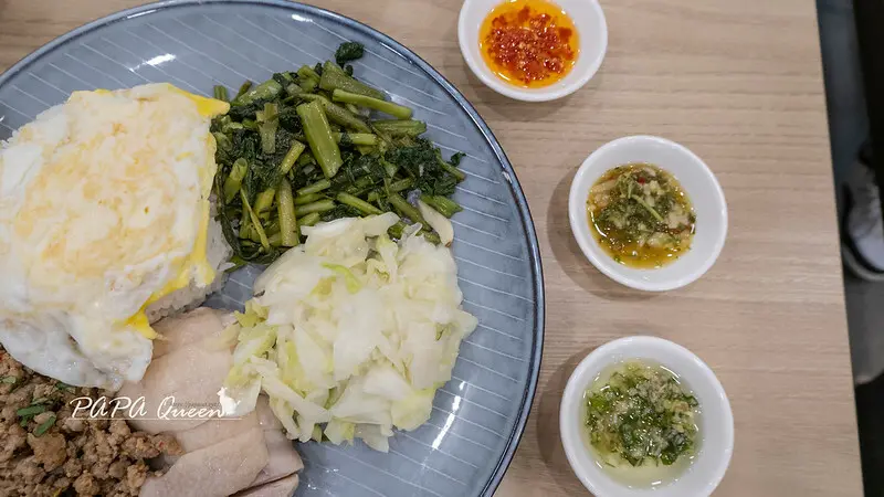 這裡的泰國香米跟一般的比起來比較濕潤飽滿,雞肉水嫩多汁,帶點微微鹹味,單吃就好吃,加上蔥油醬更是讓人停不下來!
