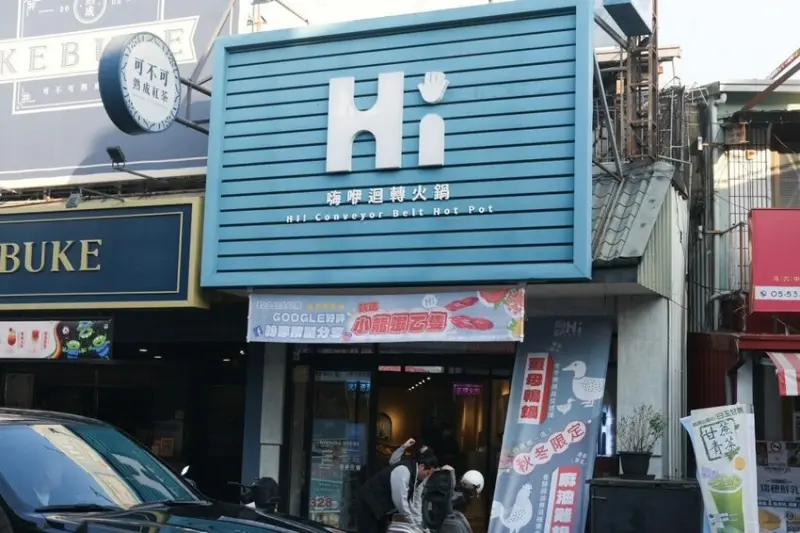 ▼【嗨咿迴轉火鍋】位於 雲林縣斗六市中山路,粉嫩的招牌看起來格外吸睛,開車可停放於附近的白線。