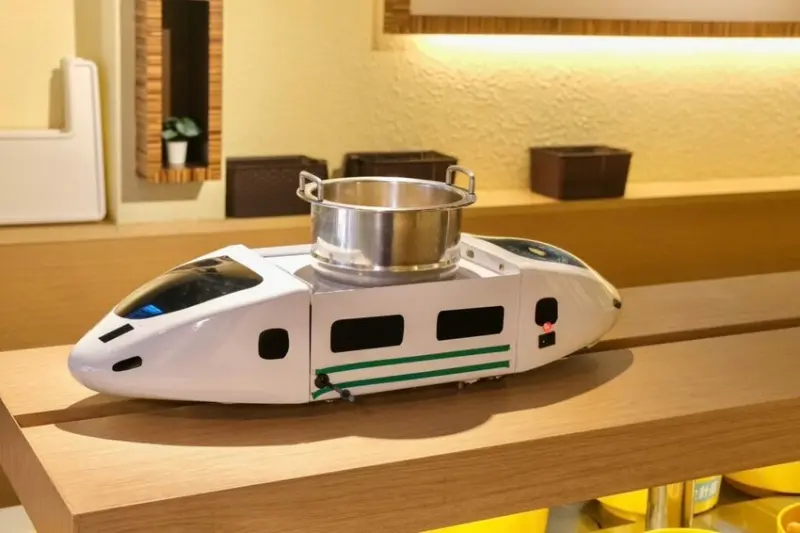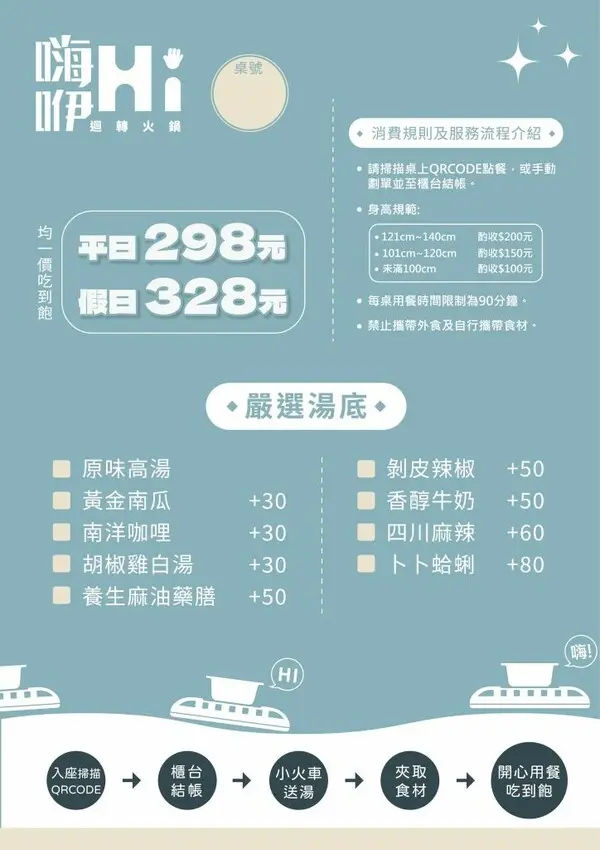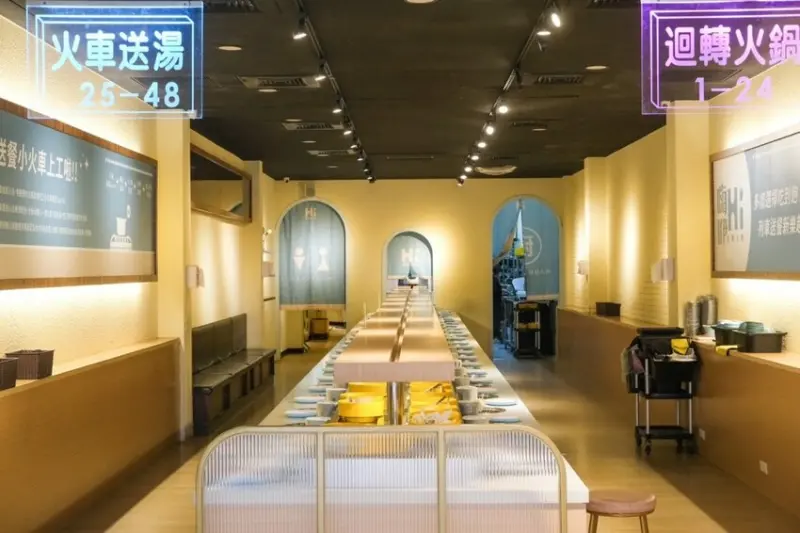 ▼【嗨咿迴轉火鍋】送湯品的方式超有趣,會由小火車乘載湯鍋來到你面前,就像在吃迴轉壽司一樣!