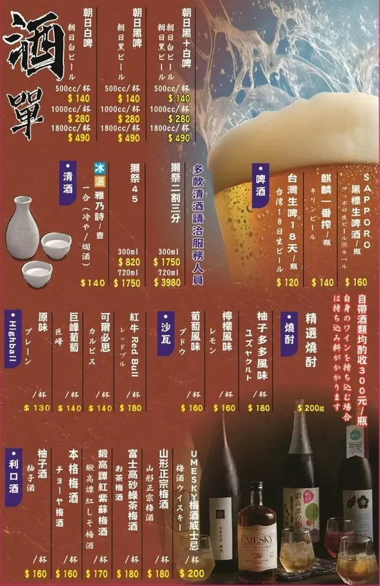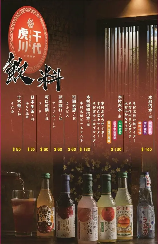 虎川千代居酒屋除了各式各樣的酒品,也有飲品可以選擇