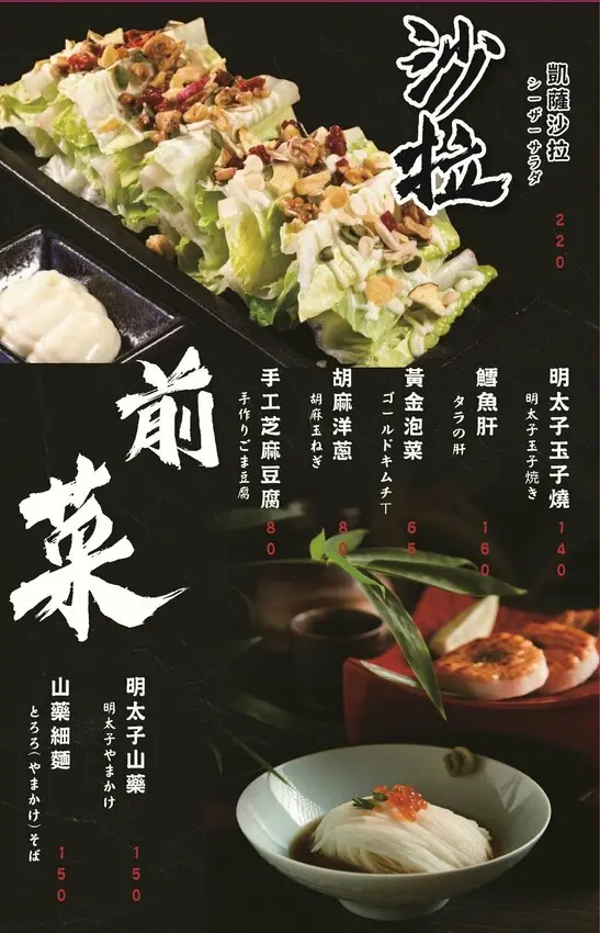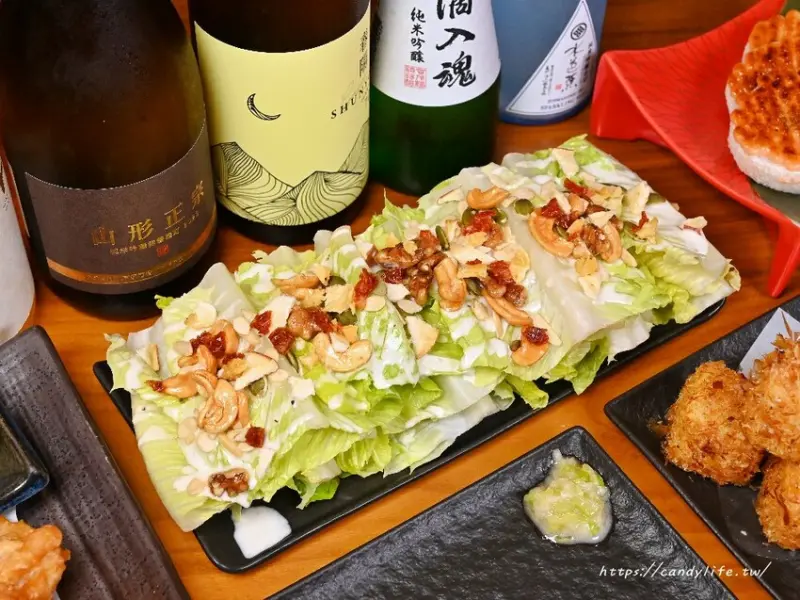 沒想到在居酒屋竟然可以吃到沙拉,虎川千代居酒屋的凱薩沙拉份量還不小,以清脆蘿美生菜鋪底,搭配凱薩醬,最後撒上滿滿堅果及果乾,口感爽脆鮮甜,清爽又開胃