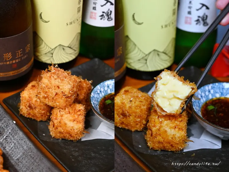 虎川千代居酒屋的揚出豆腐也是老少咸宜的一道料理,採用軟嫩的雞蛋豆腐,裹上麵包粉下去酥炸,外皮香酥脆口,裡頭的豆腐更是嫩到不行