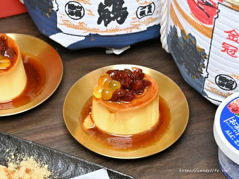 想吃手作布丁,在虎川千代居酒屋也吃得到,上頭搭配百香果口味的爆珠及酒漬櫻桃,偏大人口味,布丁口感很綿密,蛋香濃厚,甜而不膩