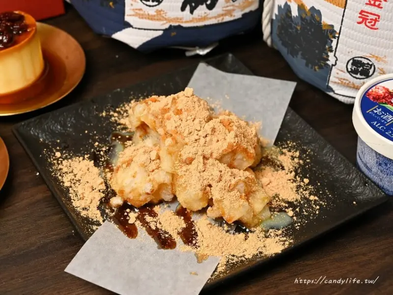 吃完鹹食,當然不能少了飯後甜點,虎川千代的日式炸麻糬糖糖也很推,現點現炸,外脆內Q,淋上黑糖醬,最後再撒上花生粉,甜而不膩,也是一道讓人一吃就停不下來的涮嘴小點