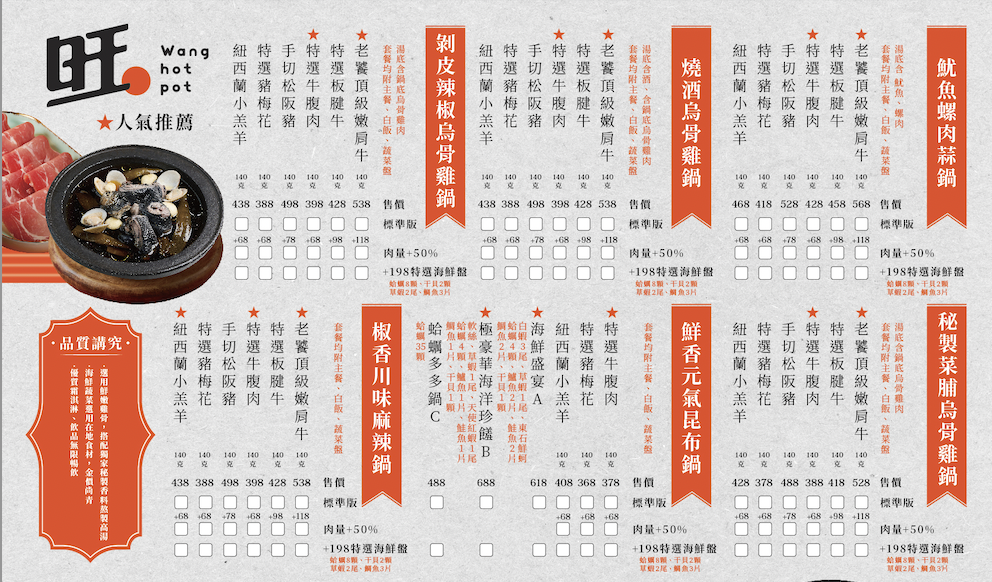 旺鍋 誠品板橋府中店|菜單Menu