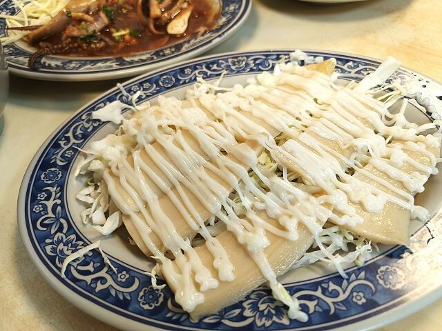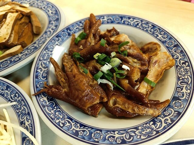 店內還有三道特別小菜,一般小吃店少見。「五味魷魚」搭配特製五味醬,帶點嚼勁更添風味;「滷鳳爪」和「沙拉鮑魚」則是開胃的冷盤小菜。