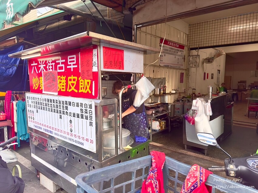 意外發現一家超美味的豬皮飯!在古早味早餐中,常見魯肉飯或爌肉飯,但豬皮飯真的超少見!這間「六米街古早味」藏身東興市場內,人氣超旺,凌晨4點半就開始營業,非常早。