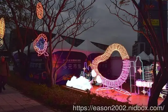 五大燈區的區域範圍很大,我們帶著小小孩,只逛了活力發光站&城市聚光燈,還有多元市集享受美食,小小孩就已經快沒電了,雖然太早來沒看到主燈秀,覺得可惜,但看著地圖上的動線以及各大網站的介紹,感覺今年的台灣燈會人潮必定不少,避免塞車擁擠,建議可以搭乘接駁車前往,會玩得比較開心。