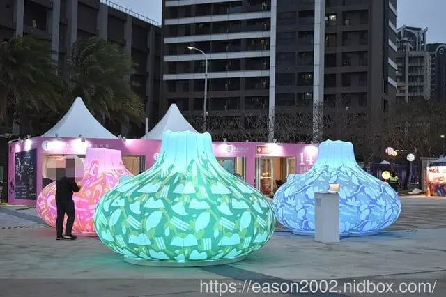 由於我們是 2/7 試營運搶先玩,主燈展演場 (A18展區_高鐵桃園站) 尚未開放,從外面看進去,就可以感受到今年的台灣燈會非常的熱鬧。