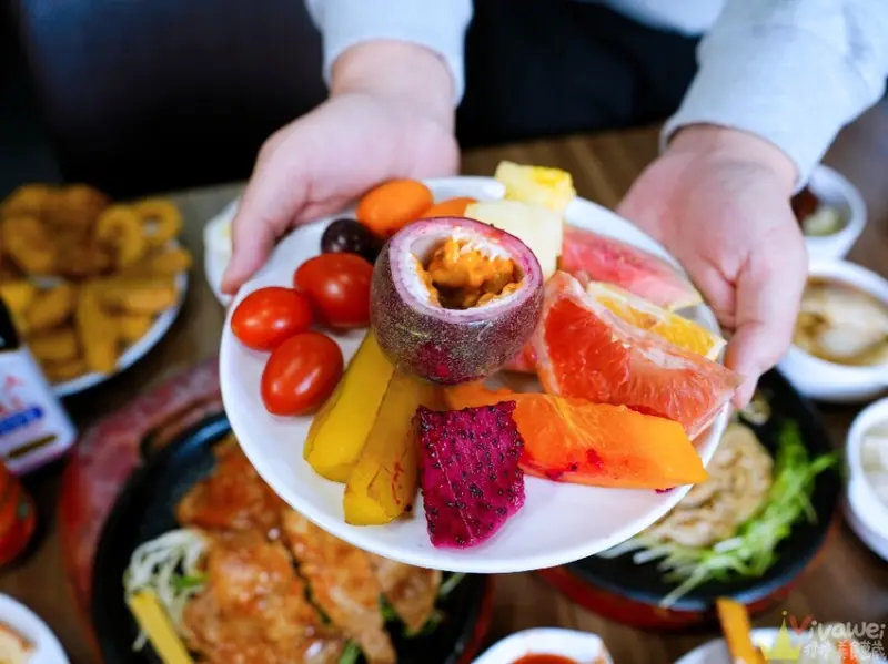 ▲水果的品項未免也太多了吧!有葡萄~番茄~楊桃~紅心芭樂~木瓜~葡萄柚~柳丁~鳳梨~金桔~火龍果~百香果!