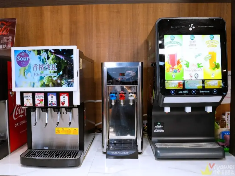 ▲飲品區有多款冷飲~ 除了基本款的可口可樂系列以外~還有香檳沙瓦系列及蔬果汁系列!