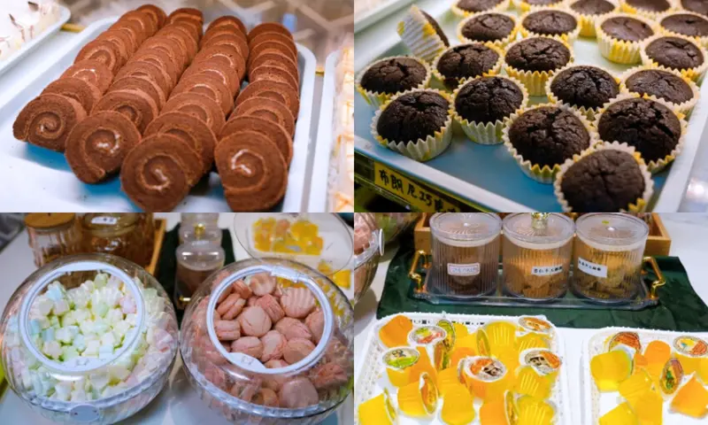 ▲甜點的品項也不少~除了小蛋糕以外~還有棉花糖~台式馬卡龍~餅乾和果凍等!