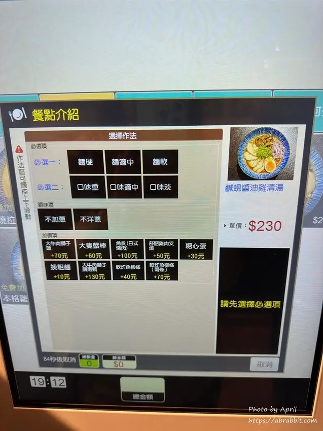 點完之後,還能選擇麵條的硬度與口味,洋蔥與蔥花選擇與加點等等。