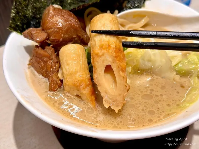 除了爌肉之外,裡面還有竹輪、半熟蛋、高麗菜等等。不得不說,這碗拉麵的湯頭跟剛剛那碗清湯的風格完全不同,而且差異很大!