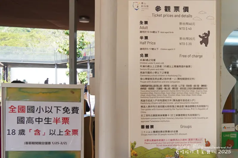 動物園全票40 元,半票20元,團體購票20人以上8折