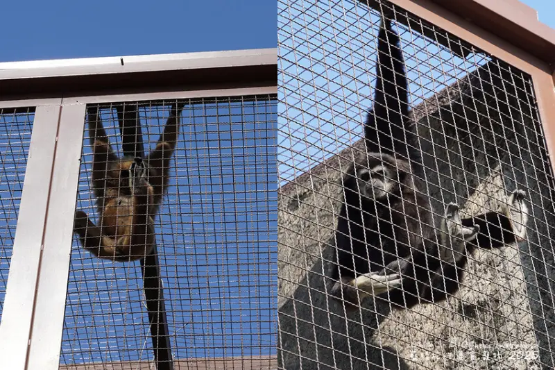 北方豬尾獼猴的特徵就是像豬尾巴的短尾巴,其中有一隻名叫小花已經高齡20歲,因為年紀漸長、免疫系統老化及免疫力下降導致皮膚問題反覆發作,透過玻璃窗可以看到牠的毛真的是比較稀疏了