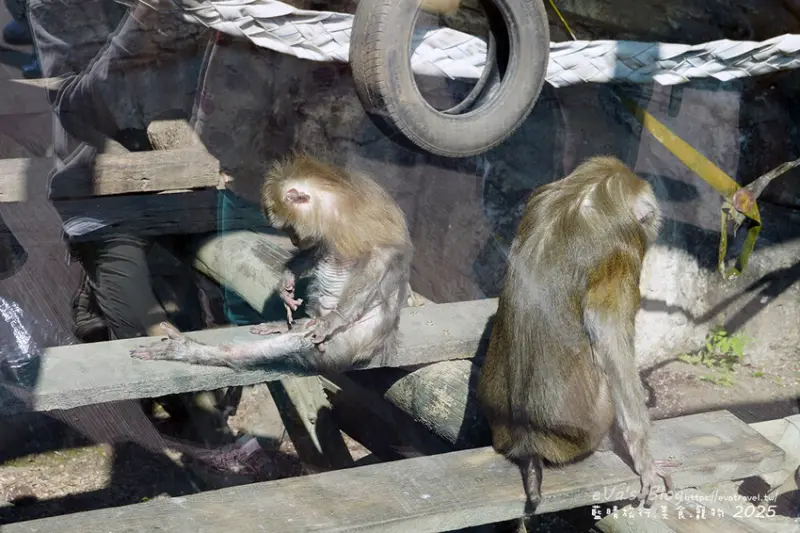 動物園裡有狐獴、水豚君、犀牛、老虎、猿猴、河馬、非洲象、眼鏡鱷及各種鳥禽等等還有…台灣黑熊,這裡的動物雖然很多都是上年紀但看起來被照顧的很好,很多動物都是自己獨居,這樣好像有點孤單,這裡除了動物還有好多自由自在的野生獼猴,請保持距離也不要帶食物在身上,因為牠們會搶食喔!