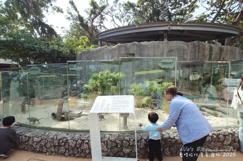 可愛動物明星之一的狐獴現在也是很多人的新寵兒,走進園區不管是大朋友還是小朋友馬上被這些跑來跑去、活潑好動的狐獴給吸引去,看到一隻狐獴老神在在的一直坐在那曬日光浴一動也不動的模樣真是有趣,還有幾隻睡到四腳朝天的狐獴真是好可愛呀!