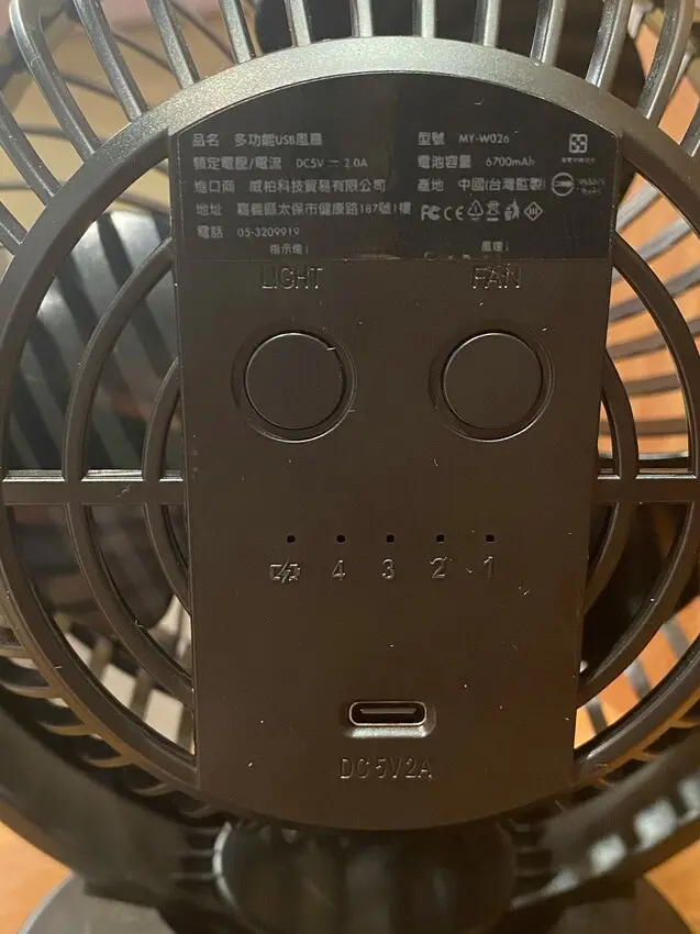 實測用10000mAh的行充,開2檔可連續吹8小時