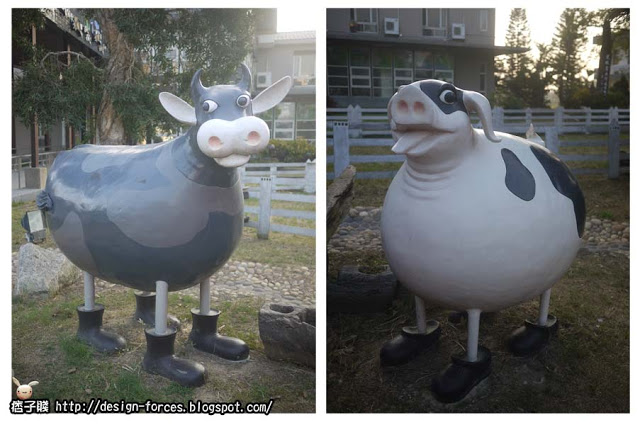 像這張圖,左邊的房屋造型,是以懷舊式的風格搭建,內擺上許多農業用品,很適合旅客邊玩邊拍照,右邊的牛牛造型藝術,主要是講述著以前農耕生活的歷史,旁邊也會附上告示牌供遊客查看。