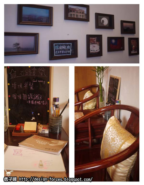 在民宿主人的引導下,我們來到今天要住的地方,採菊房!這家民宿的房間命名很特別,當時賤賤好奇的問民宿主人,為何要叫做採菊呢?民宿主人則說,這是來自於陶淵明【採菊東籬下,悠然見南山】,....冏!頓時感受到了...為何這間叫做石路書齋了!