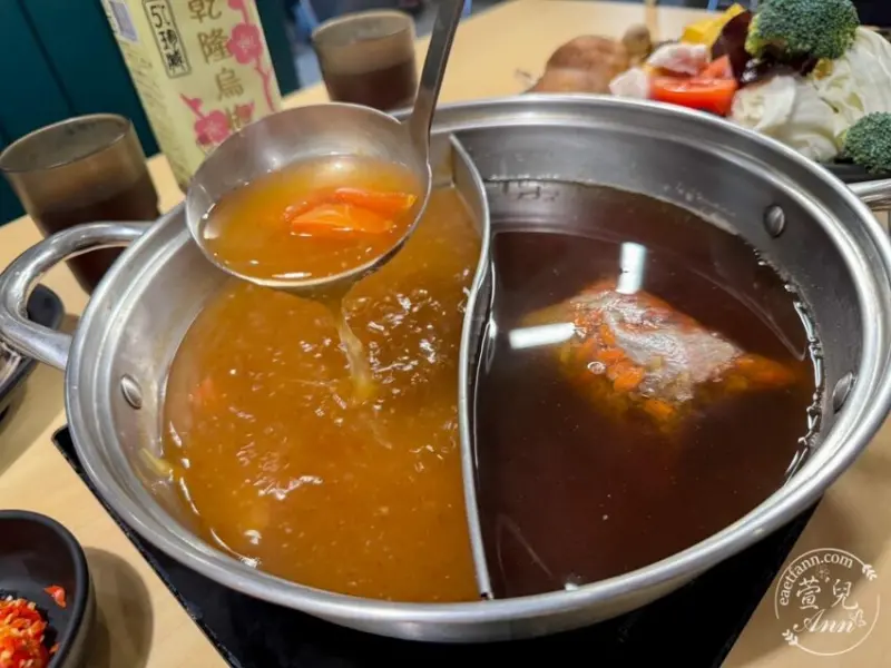 鴛鴦鍋 我選擇 [甘蔗大骨湯底+番茄] 與 [甘蔗大骨湯底+藥膳]