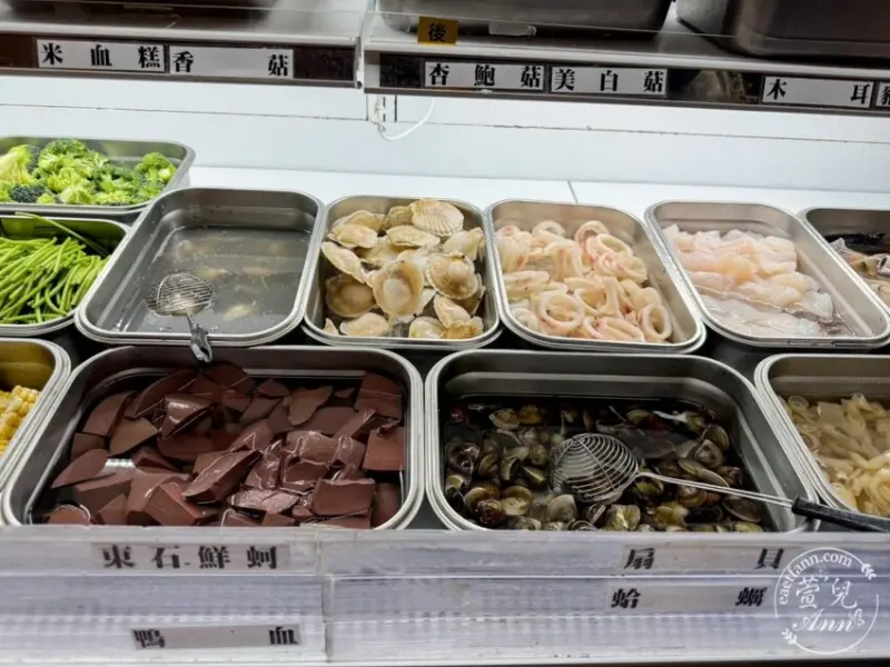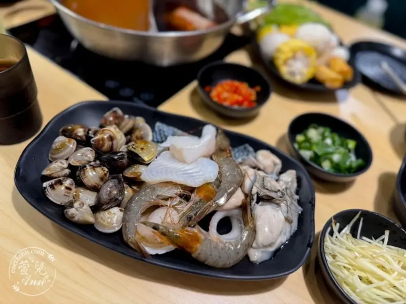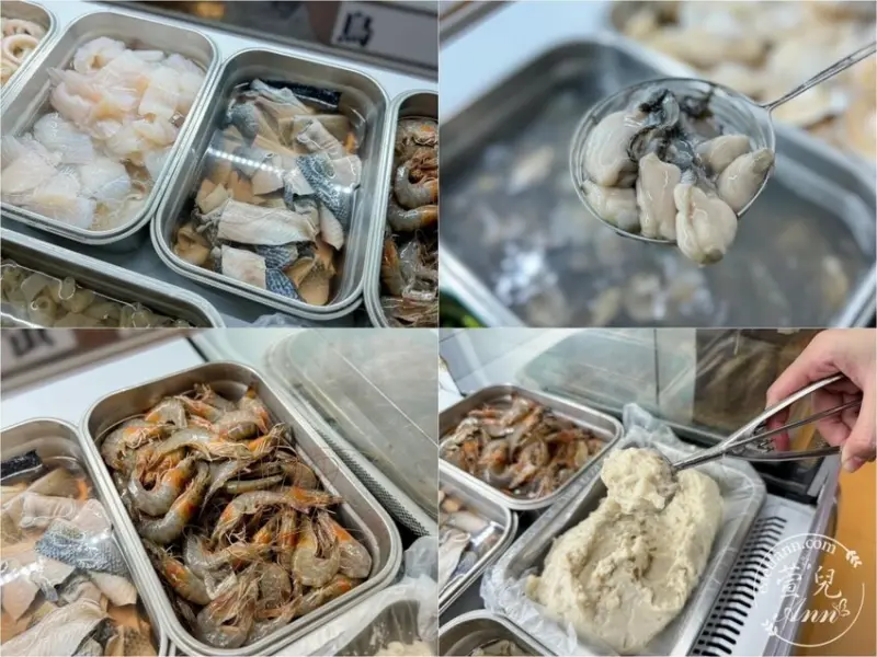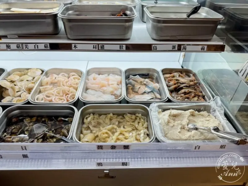 大白蝦、魚皮、巴沙魚、鮮蝦、蛤蜊、鮮蚵、大扇貝、還有Q彈的花枝丸(超好吃)