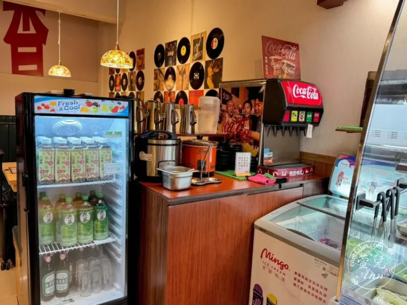 在店家冰箱中就有 綠茶與烏梅汁的選擇 (另付費)