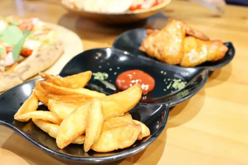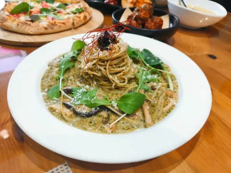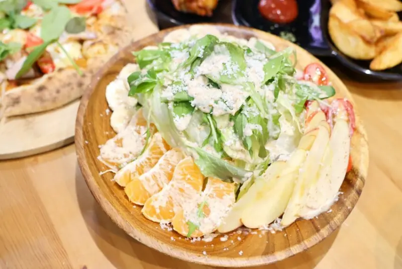 菜單提供手工現做披薩、義大利麵、燉飯、炸物、小點心、木盆沙拉、咖啡和飲品等義式料理