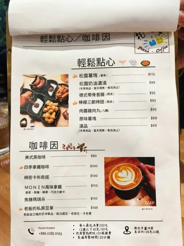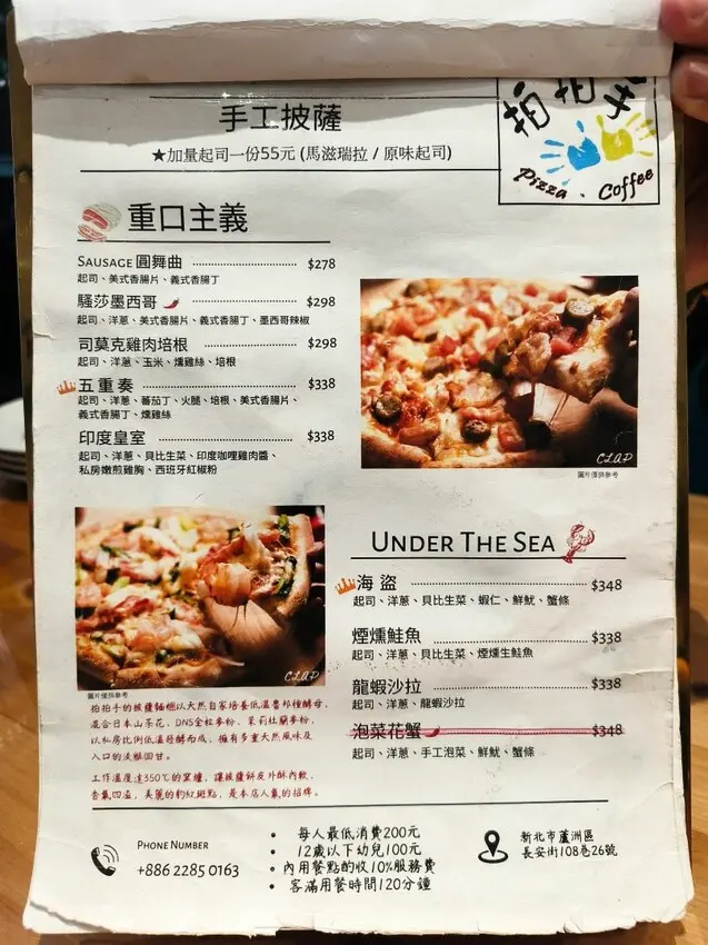 拍拍手披薩咖啡是三蘆在地的人氣披薩店,鄰近蘆洲忠義廟旁長安街的巷子內,主打現點現做料理