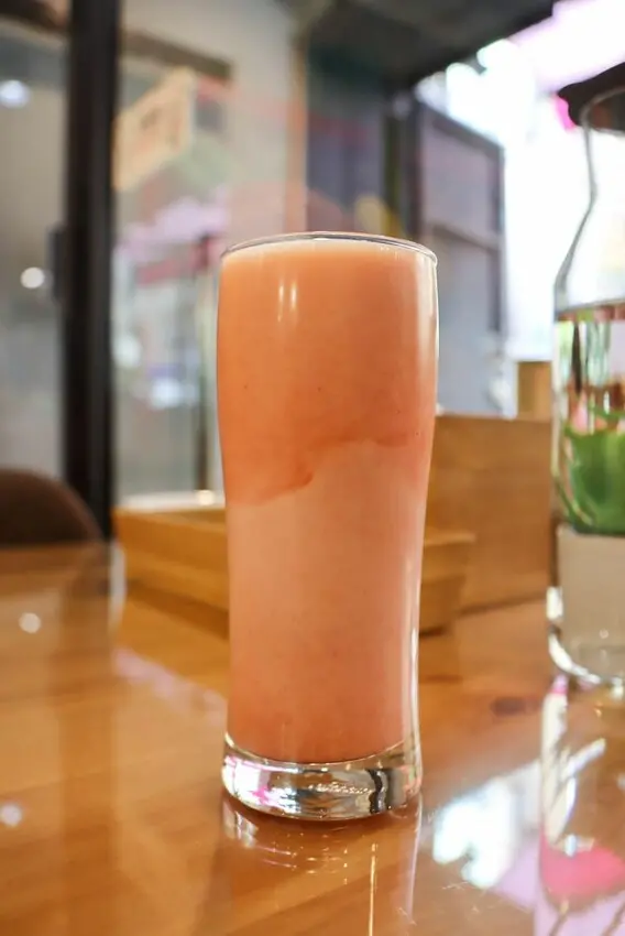 西瓜本身的甜度加上一些鮮奶,冰冰涼涼的,搭配PIZZA或義大利麵都很合適