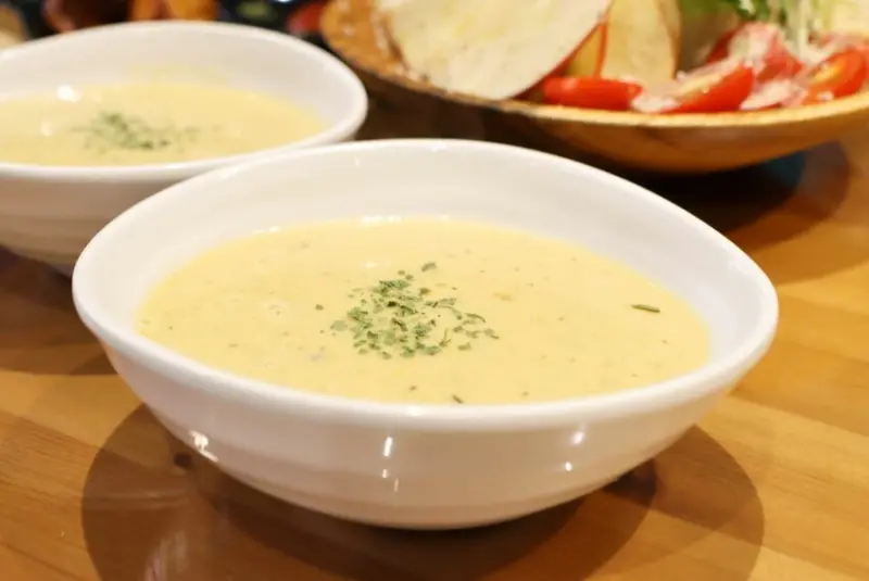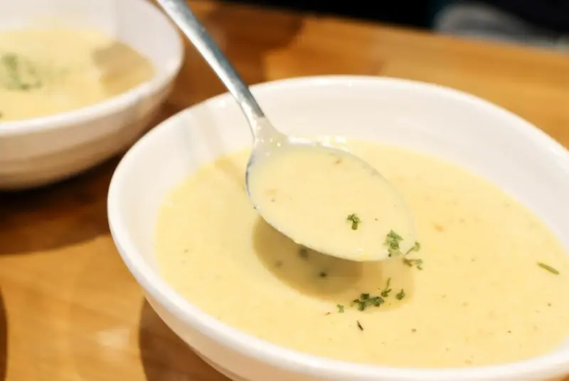 喝得到玉米的香甜滋味,濃稠度不是因為添加澱粉而來,而是將新鮮甜玉米粒打碎烹煮而成,是一道順口好喝的湯品