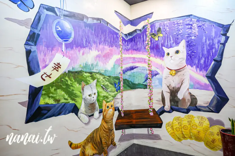 藏在轉角處的網美打卡牆超吸睛,尤其是上面畫著三隻貓咪圖案,療癒指數百分百,可愛到大人小孩都會站在這裡和它合影。