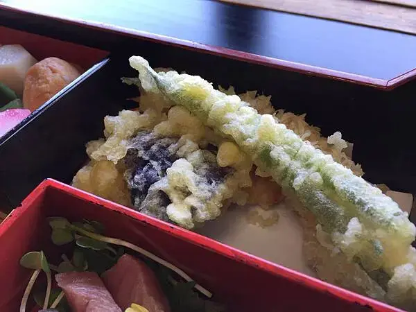 新鮮的蘆筍、茄子裹上金黃的麵衣,成為一盤美味健康的天婦羅~