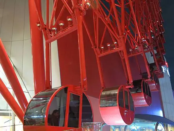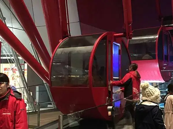 雖然人潮眾多,不過流動速度非常快,大約等了10-15分鐘後,就開始搭乘壯觀的小紅摩天輪了