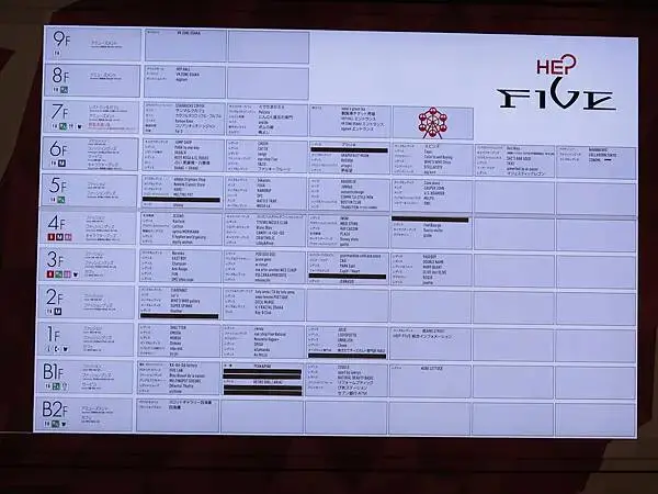 梅田Hep Five百貨主要販售衣服、玩具、餐廳進駐等,想搭乘鮮紅色摩天樓,請搭電梯到7樓。