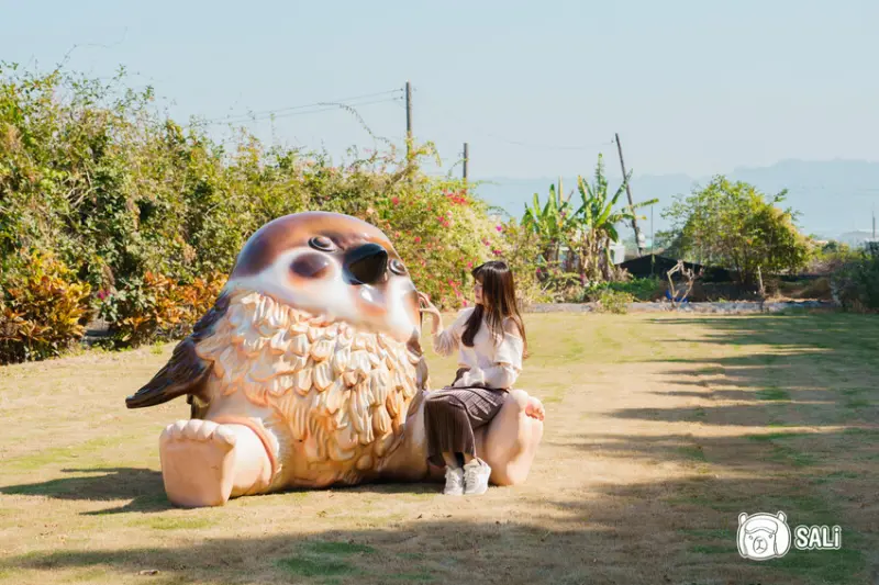 到田中窯創意園區賞花之餘,別錯過大草皮及戶外造景,寬敞草坪上放著許多胖嘟嘟的麻雀藝術裝置,萌到讓人拍不停,無論是擺出「小鳥依人」的Pose,還是讓小孩、毛孩在草地上盡情放風,都很適合
