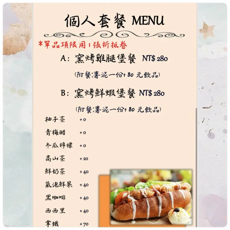 窯烤雞腿堡或窯烤鮮蝦堡,兩款口味隨你選!每份套餐都會附上薯泥和飲品,讓你吃得超飽足。香Q的窯烤麵包,夾進軟嫩雞腿肉或彈牙鮮蝦,再搭上爽脆的生菜,一口接一口,根本停不下來!