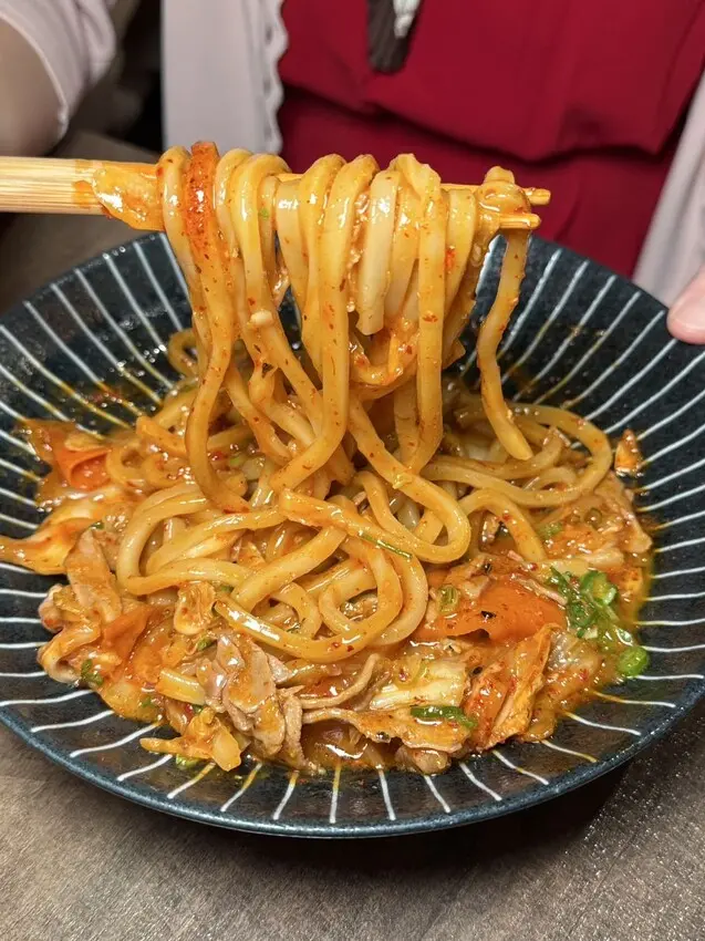 ▼主食大推這一道~將蛋黃劃破拌入增添濃郁感,鹹香的泡菜偏重口味,麵條Q彈入味僅僅扒附著醬汁我超愛!