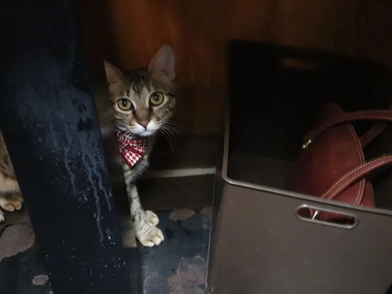 ▼吃到一半發現腳邊有東西在動,原來是小貓咪XD 超可愛
