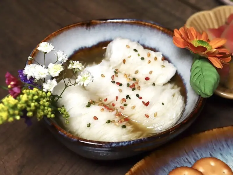 ▼輕輕夾起來千絲萬縷相當沽溜真的很像麵條耶XD 口感冰涼滑口,搭配清爽的醬汁很開胃