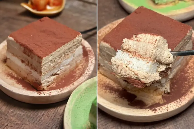 ▼沒想到居酒屋還可以吃到手作甜點耶!提拉米蘇濕潤不乾口、甜度也剛好不膩,散發著淡淡的咖啡酒香,最下面是餅乾帶點口感。兩種口味都好吃、抹茶也不會太苦澀帶著茶香。