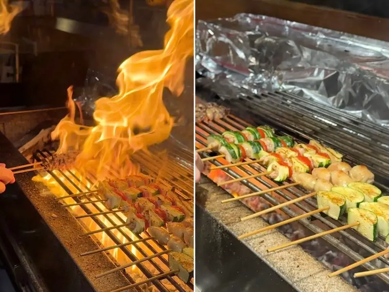 ▼吧台區還可以看到店員燒烤的過程,炭吉郎使用木炭燒烤多了炭香,由專人掌握食材的完美熟度