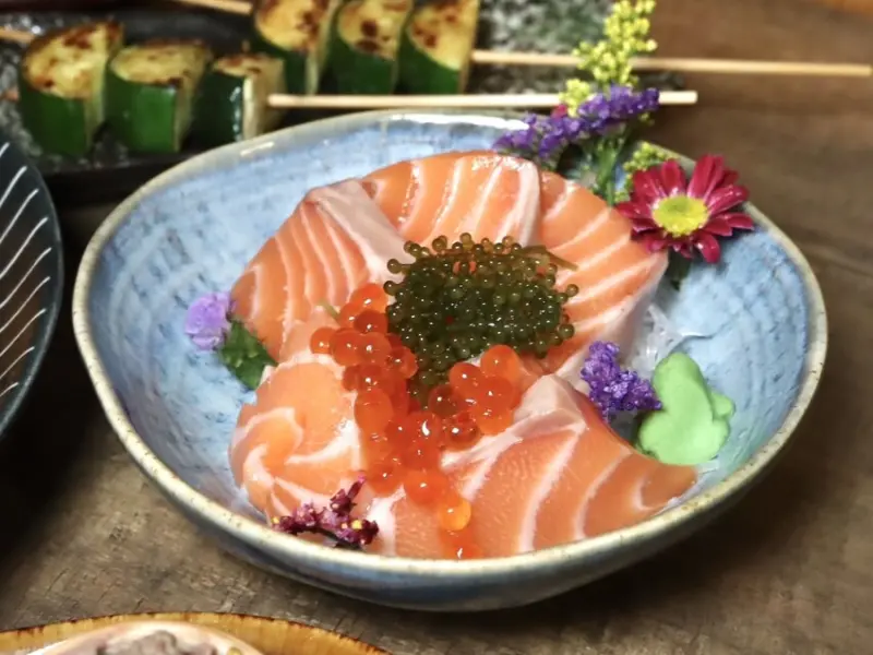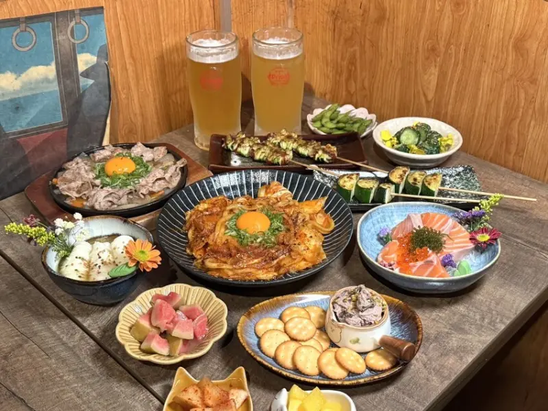 板橋居酒屋推薦「炭吉郎居酒屋」,菜單品項豐富多樣,從烤串、生魚片、手作甜點、還有外面居酒屋吃不到的私房料理到都有,這次點的都完全無雷有夠好吃。餐點擺盤加入小花朵點綴,不僅吸睛又好拍!店內還有可愛的店貓巡邏很療癒。營業到晚上11點,要和朋友同事聊天八卦的聚餐好去處