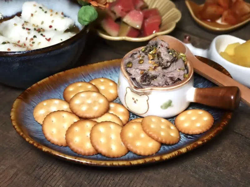 ▼搭配小餅乾,冰冰涼涼吃起來鹹甜鹹甜沒有腥味,喜歡吃內臟的人一定要試試看~