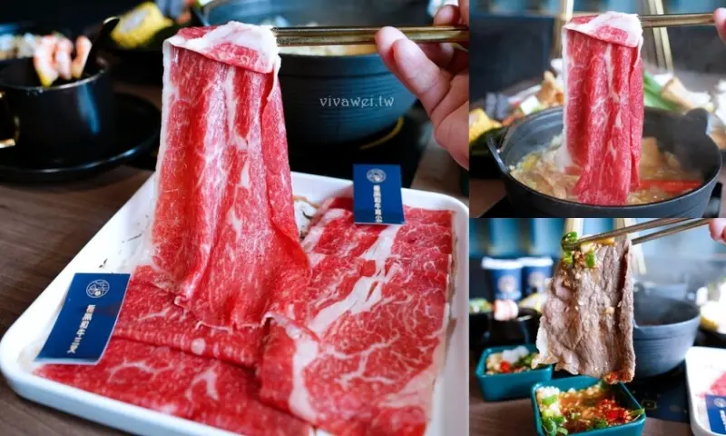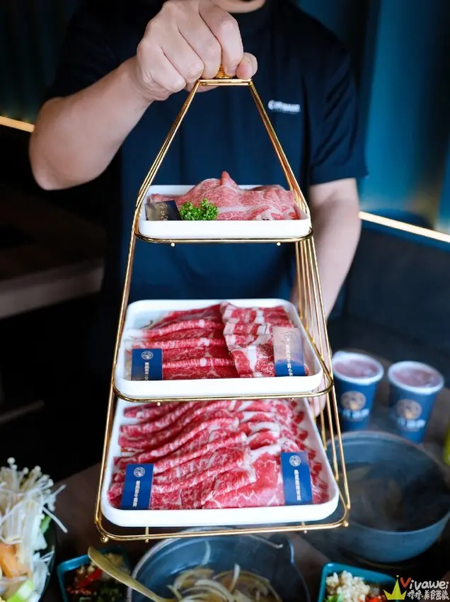 ▲極黑和牛三叉~三叉牛主要是選用牛隻後腿的部位~油脂含量較低~稍微涮一下就能吃到香甜肉汁與濃郁肉香唷!