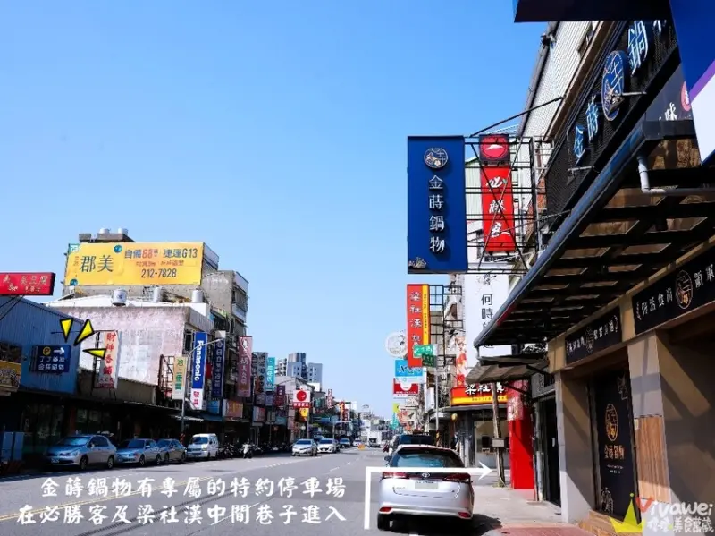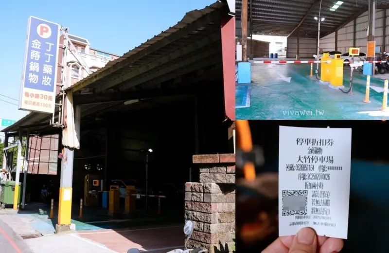 ▲「金蒔鍋物-桃園大竹總店」附設特約停車場,就在前方必勝客&梁社漢排骨中間的巷子右轉,停好車後步行1分鐘即可到店!結帳時再跟櫃台說有停車在特約停車場,就會給折抵兩小時的停車折扣券,很方便(一小時30元,每日最高100元)!