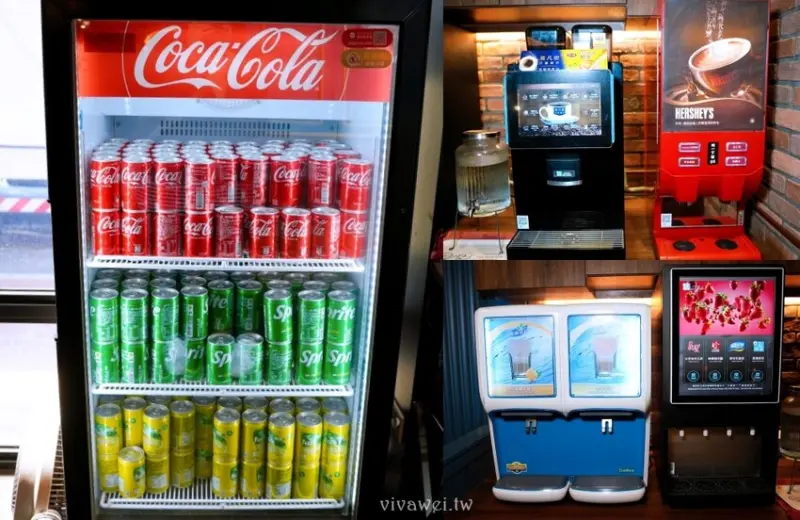 ▲飲料有罐裝的氣泡飲料~雀巢金選奶茶~雀巢金桔蜜風味綠茶~義豐古早味冬瓜茶~檸檬咖啡醋~原味乳酸飲~無糖綠茶~莫凡比咖啡系列~立頓奶茶系列~HERSHEY’S熱飲等!